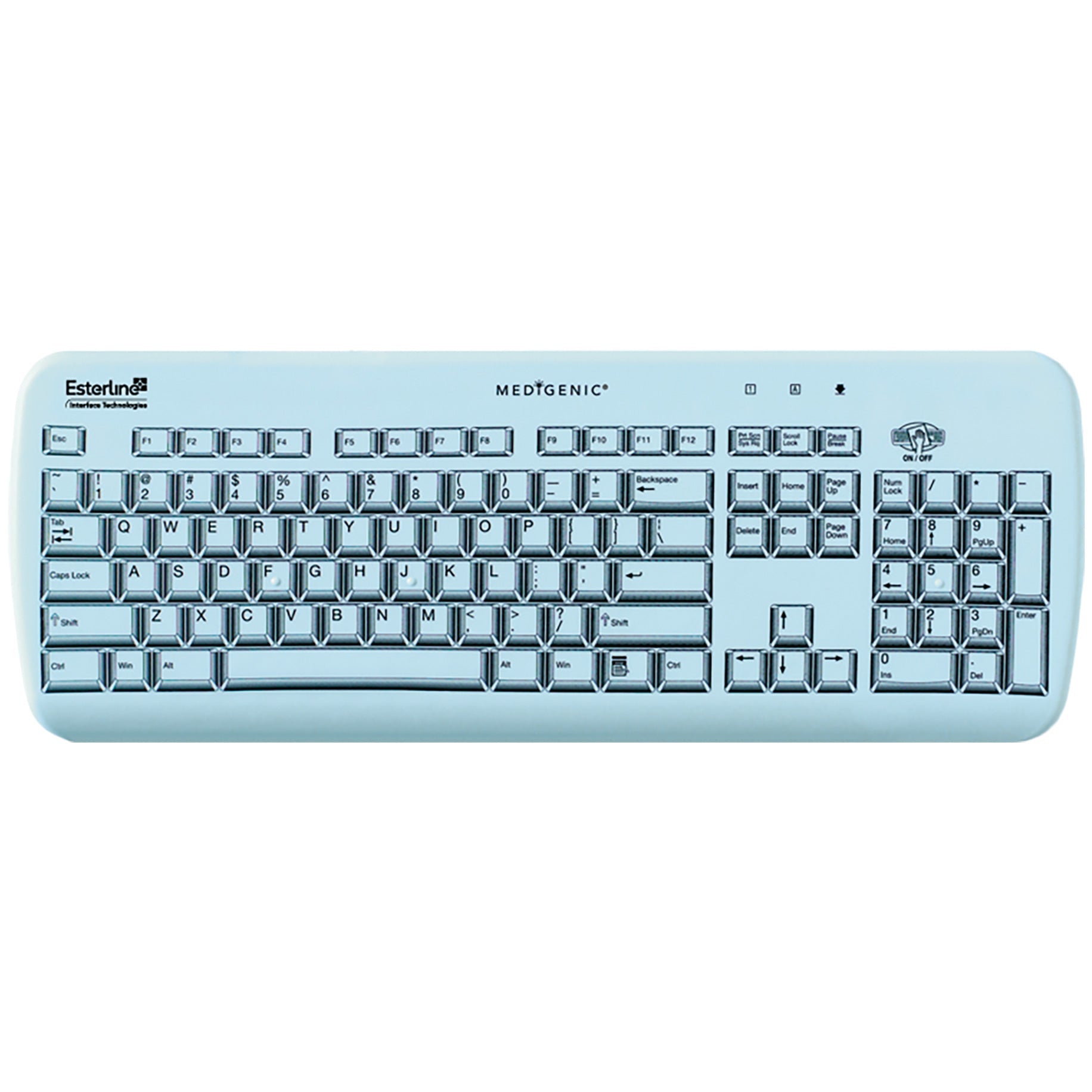 Note: This keyboard is not wireless The Medigenic Essential keyboard provides a cost-effective solution to improving infection control methodology in healthcare environments where computer keyboards collect biological contaminants. It features a flat design that enables quick wipe downs with hospital-grade disinfectants to reduce keyboard cross contamination, while providing standard conventional keyboard tactile feedback for high-speed data entry capability. Compatible with Microsoft Windows 10, Microsoft Windows 8, Microsoft Windows 7, Microsoft Windows XP, Microsoft Windows 2000, Mac OS, Linux Specifications Flat keyboard design with tactile keys to enable high-speed data entry Hy0llergenic and latex-free Sealed to IP67 standards Single ‘disable’ key allows fast sanitisation without the need to disconnect the keyboard or mouse USB plug and play; compatible with Windows and Mac Dimensions Length 462mm x Depth 34mm x Width 170mm Medigenic keyboards and mice have a 2 year warranty from date of shipment from APC