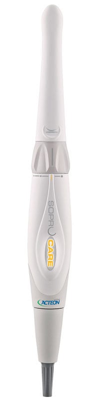 The "SoproCare" concept was developed to assist the dental professional during prophylaxis and periodontal treatment in the dental office. The camera utilizes unique fluorescence technology (SOPRO patent - 2003) to illuminate dental tissue to reveal caries in Cario mode, as well as new and old dental plaque in Perio mode. In addition, SoproCare is the first product on the market to reveal gingival inflammation, in Perio mode too. In Daylight Mode, SoproCare can also be used as a camera, providing all of the necessary tools to perform a complete and time efficient oral examination. The dental professional can now achieve complete prophylactic treatment with one device. Cario Mode - Fluorescence for Everyone Occlusal caries are clearly revealed by the bright red color in the "Cario" mode. Other surrounding tissue is displayed in black and white, thus drawing the focus only to the carious lesion. Perio Mode - Highlight with a precise and reliable dental mapping The wavelength emitted by the LED lights of SoproCare highlight, for the dental professional, the different tissue represented by a chromatic mapping. Daylight Mode - Enjoy the superior image quality Enjoy the superior image quality you have come to expect from SOPRO, the world wide leader in intraoral cameras. Intrude grooves thanks to the macro vision Macro mode provides magnification of up to 115 times, revealing details otherwise not visible to the naked eye. This allows for close monitoring of micro fractures and their development Complete with 4 intra oral tips, 2 light shields and a hand-piece holder