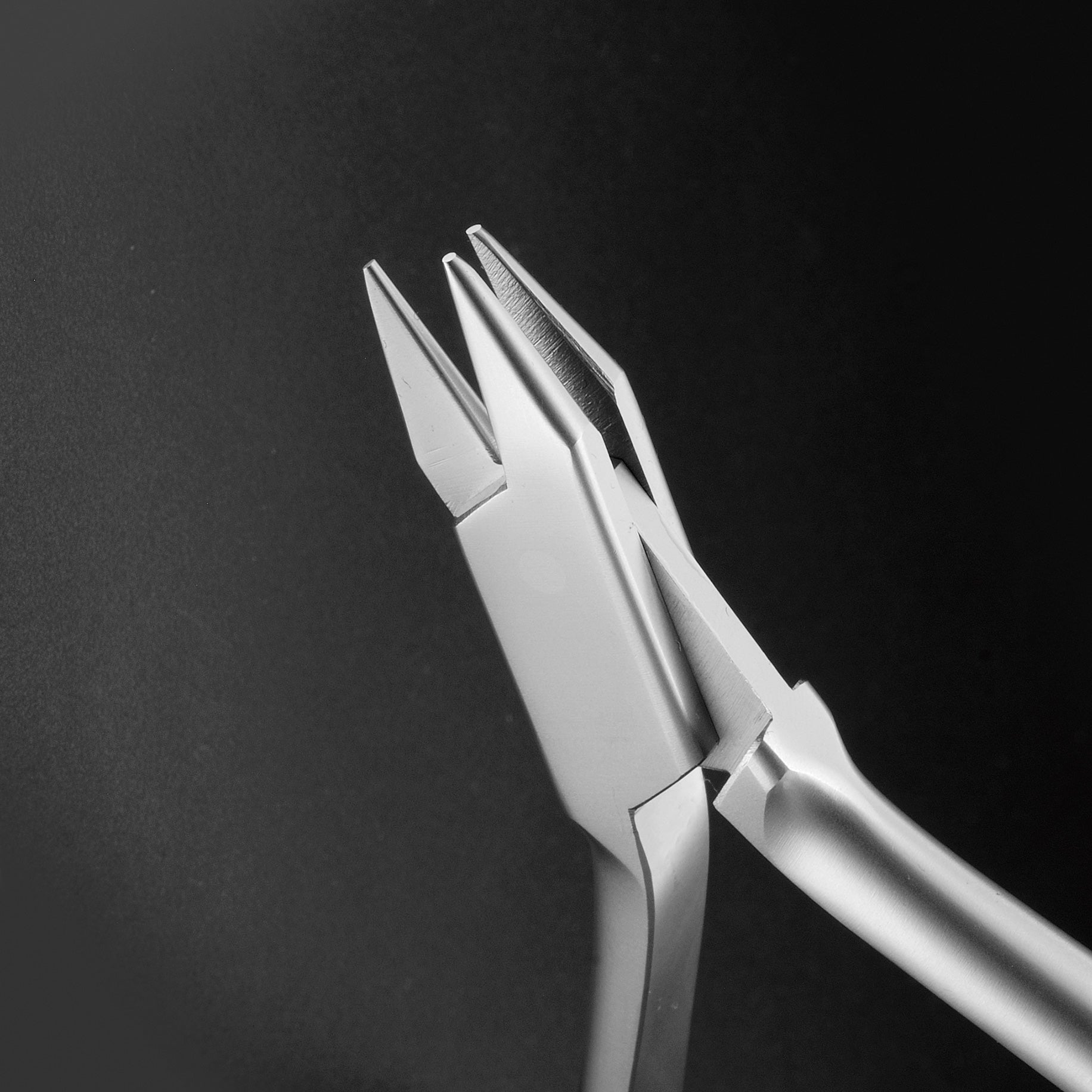 Dia max 0.7mm. Used to bend metal strips or wire used in orthodontic work. 3 jaw plier. Long. Lightly rounded... Read more