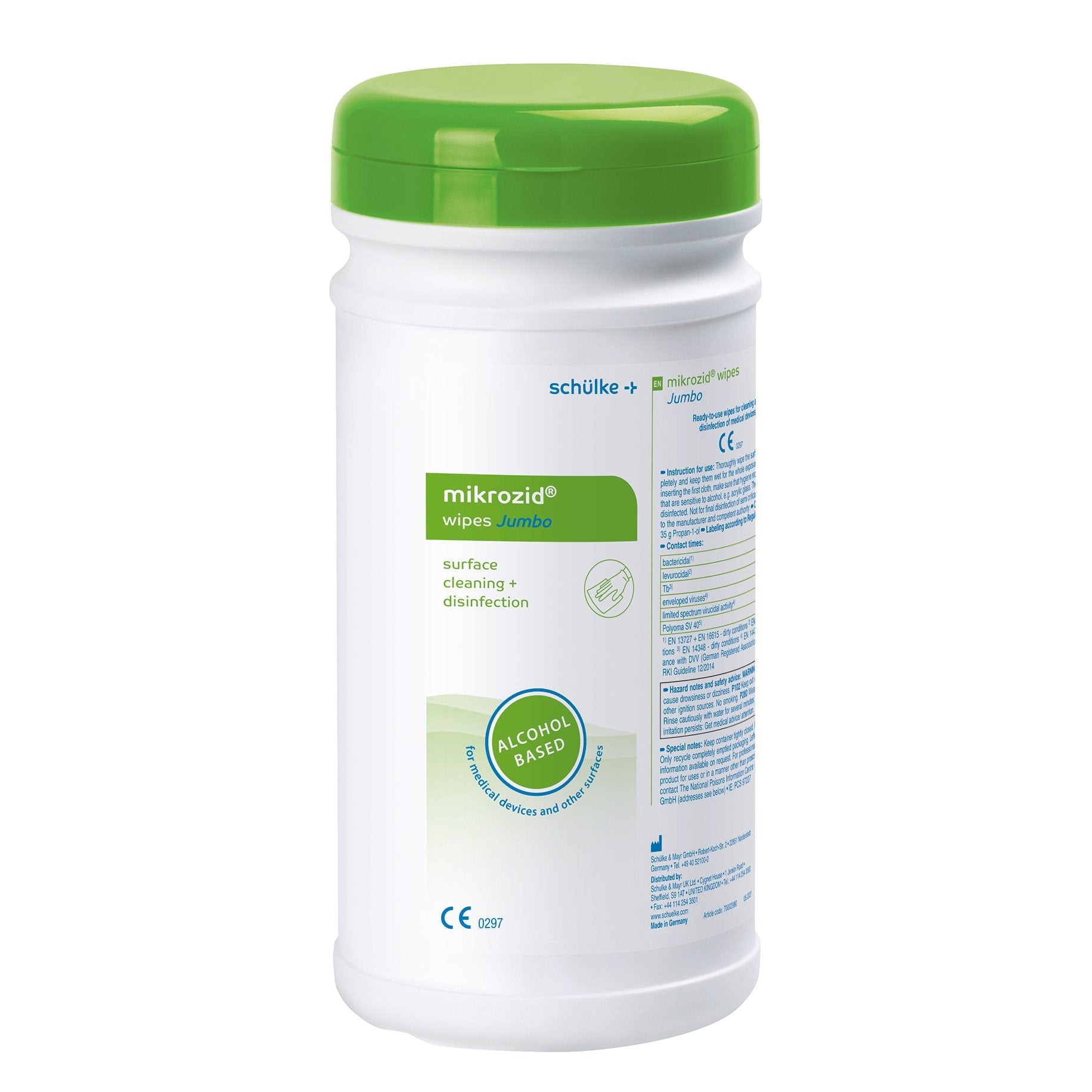 Unique alcohol formulation for virucidal protection in the cleaning and disinfection of hard surfaces. broad efficacy within very short time residue-free ready to use Fields of Application: The product is suitable for disinfecting medical devices and other surfaces. Schulke's classic product among the rapid disinfectant products is suitable for disinfecting near-patient surfaces with an increased risk of infection that require short exposure times. Composition: 100 g solution contains the following active substances: 25 g Ethanol (94 %) 35 g Propan-1-ol Microbiological efficacy: bactericida EN13727, EN16615 - dirty conditions: 1 min tuberculocidal EN14348 - dirty conditions:1 min yeasticidal EN13624, EN16615 - dirty conditions: 1 min virucidal against enveloped viruses EN14476 - dirty conditions: 30 sec limited spectrum virucidal activity EN14476 - dirty conditions: 30 sec Polyoma SV40 in accordance with DVV (German Registered Association for Combating Viral Diseases)//RKI Guideline: 5 min Tub containing 220 wipes