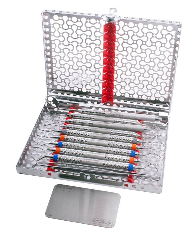 The Signature Series Collection features a compilation of clinicians most popular procedural set-ups. Simply order a Collection today and receive high quality Hu-Friedy instruments and IMS cassettes together in procedural set-ups at significantly reduced prices. Create a professional, efficient working environment with the Next Generation of IMS Infinity cassettes. This kit contains the following components:- MS Infinity Cassette 1/2 DIN for 10 instruments, Red (IME12DIN10) High Definition Mirror (MIR5HD) Mirror Handle (MH6) ODU Explorer n.11/12 AfterFive version (EXD11/12A6) UNC Probe 1-15 mm (PCPUNC156) Nabers Probe 3-6-9-12 mm (PQ2N6) Gracey Curette MiniFive 1/2 EverEdge, Grey (SAS1/291) Gracey Curette MiniFive 11/12 EverEdge, Orange (SAS11/1293) Gracey Curette MiniFive 15/16 EverEdge, Blue (SAS13/1498) Gracey Curette MiniFive 15/16 EverEdge, Orange (SAS15/1693) College Dressing Pliers No.2 (DP2) Gracey Curette MiniFive 17/18 EverEdge, Blue (SAS17/1898) Diamond Sharpening Card XFine Grit (DSCXFINE)