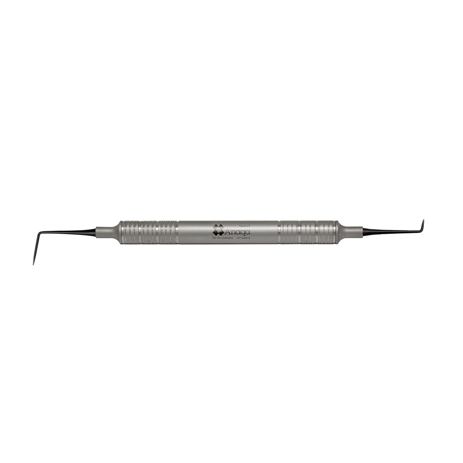 All Anaqa products are made of high quality French steel which provide maximum corrosion resistance, appropriate hardness as well as required elasticity in the handles. They come individually boxed which includes a tamper evident seal and are available in two distinct finishes: stainless steel and the exclusive titanium nano black finish only available from Dental Directory. Every Anaqa product is subjected to a rigorous four-step quality control process. This robust process is the reason why Anaqa are able to confidently offer industry-leading warranties on all their instruments. Slim beaks for better access and hold Stunning finish with high corrosion resistance Four stage QC process Optional titanium coating for premium finish and maximum corrosion resistance High quality medical grade steel Smooth joints for stress-free working Ergonomic, lightweight design Industry-leading warranties Anaqa probes are coated with titanium (golden colour) which is a very tough coating providing long life to the working tips but also reducing the stickiness and pullback with dental composites. Available in either stainless steel or titanium nano black finishes in a wide range of the most popular patterns.