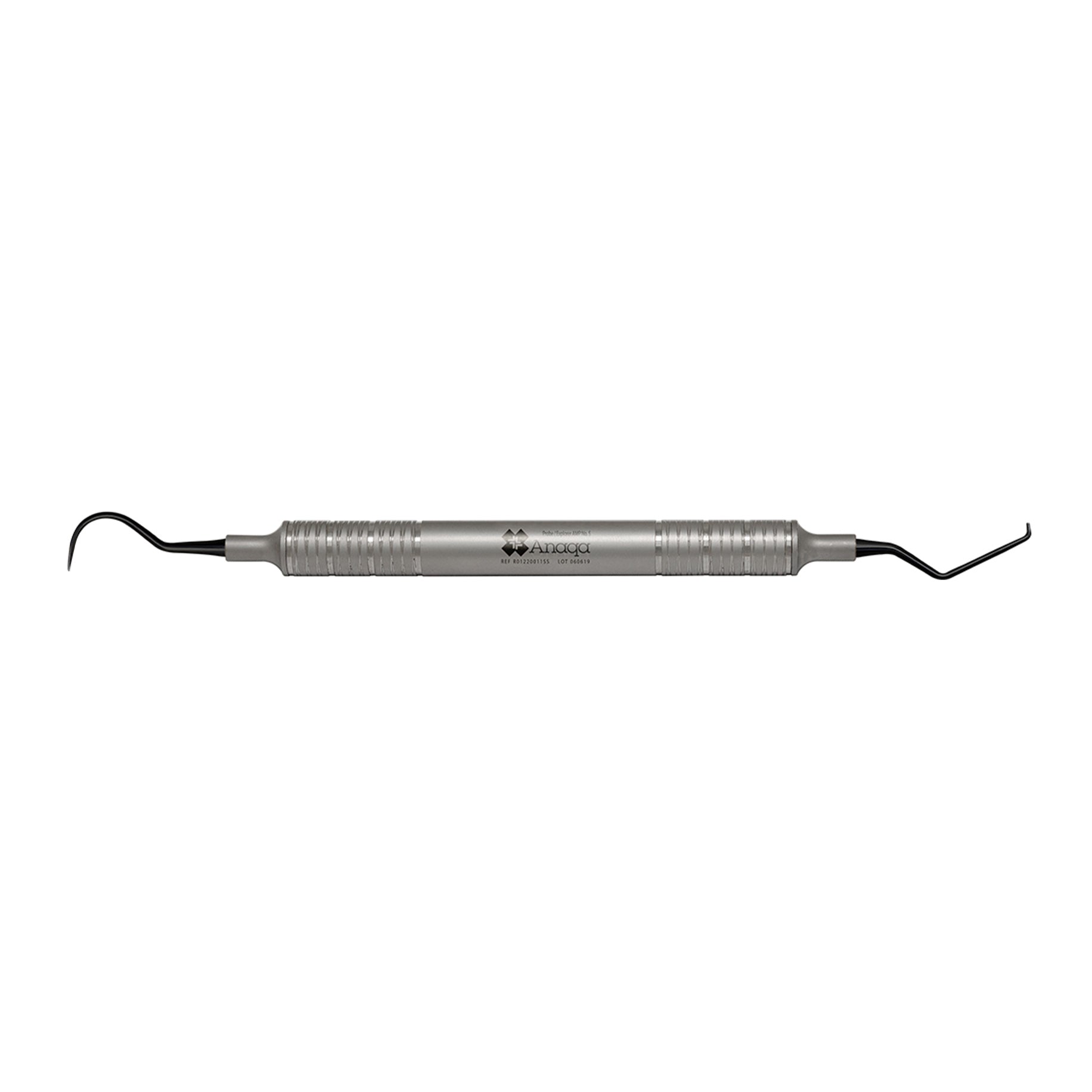All Anaqa products are made of high quality French steel which provide maximum corrosion resistance, appropriate hardness as well as required elasticity in the handles. They come individually boxed which includes a tamper evident seal and are available in two distinct finishes: stainless steel and the exclusive titanium nano black finish only available from Dental Directory. Every Anaqa product is subjected to a rigorous four-step quality control process. This robust process is the reason why Anaqa are able to confidently offer industry-leading warranties on all their instruments. Slim beaks for better access and hold Stunning finish with high corrosion resistance Four stage QC process Optional titanium coating for premium finish and maximum corrosion resistance High quality medical grade steel Smooth joints for stress-free working Ergonomic, lightweight design Industry-leading warranties Anaqa probes are coated with titanium (golden colour) which is a very tough coating providing long life to the working tips but also reducing the stickiness and pullback with dental composites. Available in either stainless steel or titanium nano black finishes in a wide range of the most popular patterns.