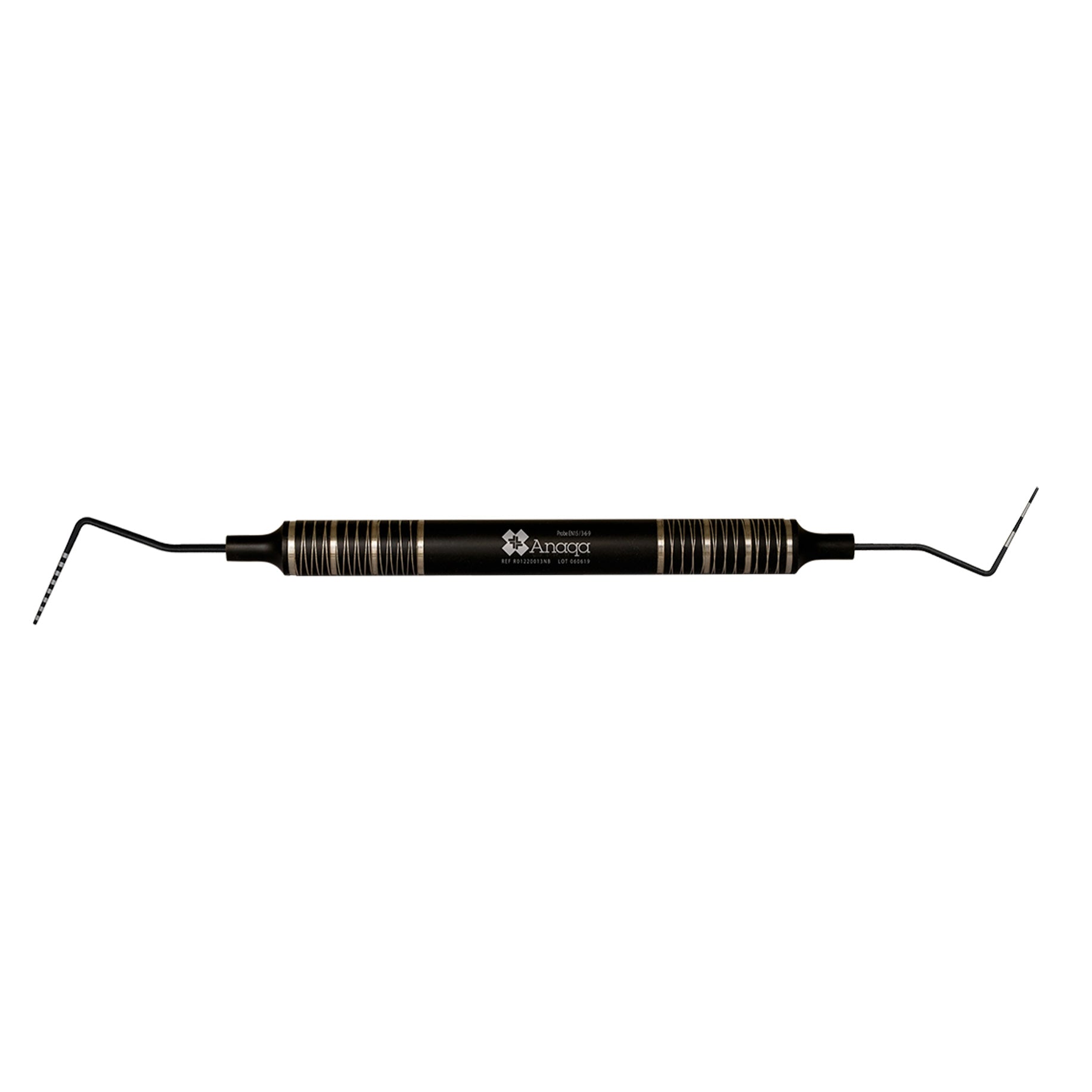 All Anaqa products are made of high quality French steel which provide maximum corrosion resistance, appropriate hardness as well as required elasticity in the handles. They come individually boxed which includes a tamper evident seal and are available in two distinct finishes: stainless steel and the exclusive titanium nano black finish only available from Dental Directory. Every Anaqa product is subjected to a rigorous four-step quality control process. This robust process is the reason why Anaqa are able to confidently offer industry-leading warranties on all their instruments. Slim beaks for better access and hold Stunning finish with high corrosion resistance Four stage QC process Optional titanium coating for premium finish and maximum corrosion resistance High quality medical grade steel Smooth joints for stress-free working Ergonomic, lightweight design Industry-leading warranties Anaqa probes are coated with titanium (golden colour) which is a very tough coating providing long life to the working tips but also reducing the stickiness and pullback with dental composites. Available in either stainless steel or titanium nano black finishes in a wide range of the most popular patterns.