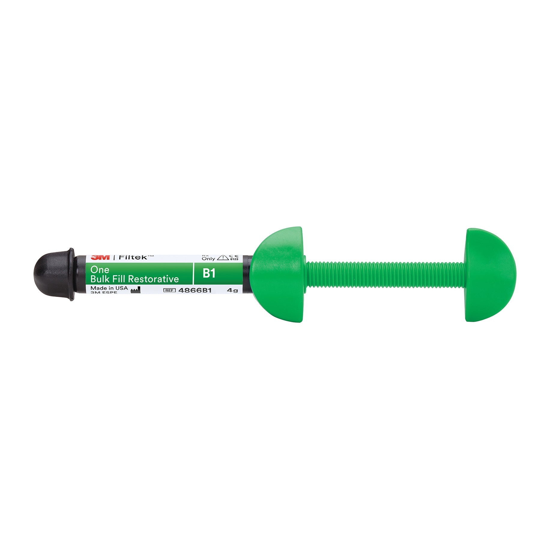 Designed for posterior restorations, the unique optical properties and improved opacity of 3M™ Filtek™ One Bulk Fill Restorative o?er the simplicity of one-step, bulk ?ll composite placement — up to 5mm — without compromising aesthetics. This posterior resin composite increases restoration e?ciency and reduces stress. 3M’s TRUE nanotechnology provides exceptional polish retention for impressive results that are made to last. Fast and easy one-step, bulk ?ll composite placement up to 5mm — no capping layer needed Increased opacity for improved aesthetics Innovative monomers reduce shrinkage and shrinkage stress to enable up to 5mm depth of cure Excellent adaptation, handling and sculptability 3M’s TRUE nano?ller technology provides superior wear resistance and excellent polish retention Capsules can be safely warmed up to 70°C for up to one hour Available in capsule or syringe delivery in 5 shades: A1, A2, A3, B1, C2 Indications:- Direct anterior and posterior restorations (including occlusal surfaces) Base/liner under direct restorations Core build-ups Splinting Indirect restorations, including inlays, onlays and veneers 4866B1