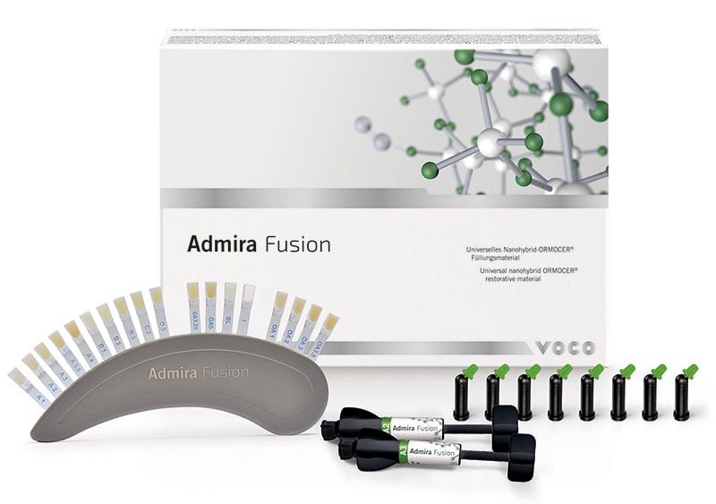 Admira fusion is a light-curing radiopaque nanohybrid ORMOCER restorative material Features: The worldwide first purely ceramic-based restorative material Pure Silicate Technology, i.e., fillers and resin matrix based purely on silicon oxide contains no classic monomers low polymerisation shrinkage (1.25 % by volume) and low level of shrinkage stress inert, so excellent biocompatible and extremely resistant to discolouration Completely universal - meeting highest demands in anterior and posterior regions Indications: Class I to V restorations Base in class I and II cavities Reconstructions of traumatically damaged anteriors Facetting of discouloured anteriors Correction of shape and shade for improved aesthetic appearance Locking, splinting of loose anteriors Repairing veneers, small enamel defects and temporary C&B materials Extended fissure sealing Restoration of deciduous teeth Core build-up Composite inlays Contains 5 x 3g (A2, A3, GA3.25, A3.5, Admira Fusion X-tra) shade guide + Futurabond U Single Dose 20 pcs