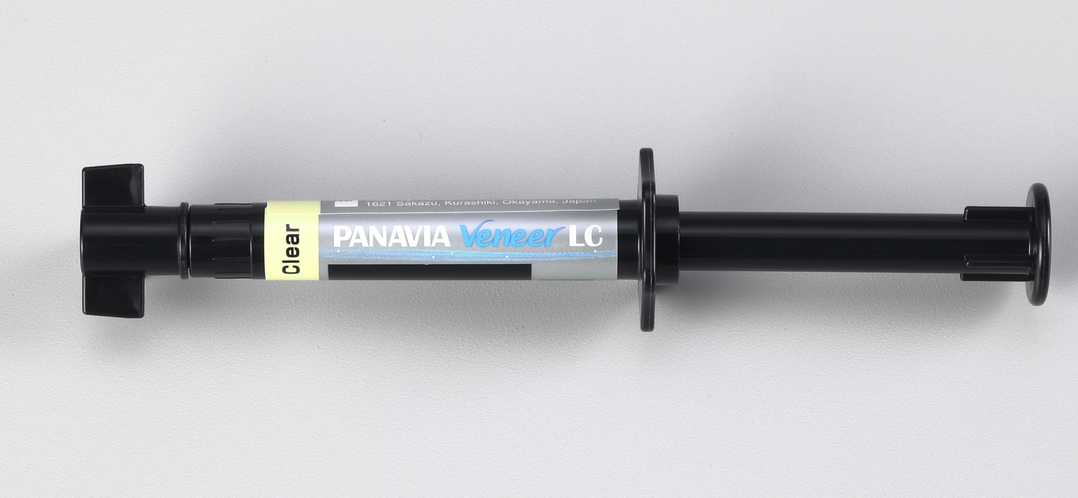 Panavia Veneer LC is a light-cure, resin cement with excellent color stability, high wear resistance, provides ample working time, and offers fast and easy clean up. Indicated for permanent cementation of Veneers Inlays and onlays with less than 2mm in thickness. Features: Innovative Curing Technology - The light-curing cement offers a long working time that facilitates simultaneous placement of multiple veneers. Panavia V5 Tooth Primer seals the adhesive interface by immediate curing upon contact with the paste (touch cure). The result is a strong and durable bond Optimized Handling - An appropriate paste viscosity and consistency allows for easier dispensing and correct seating of the restoration, while the one-second tack-cure function provides for smooth excess cement removal. High Esthetics - A low film thickness and good polish ability allow users to create smooth margins. Four highly colour stable shades offer long-lasting aesthetics. Matching try-in pastes make it easy to select the right shade. Contains: 2.6g/1.5ml Syringe & 5 Applicator Tips