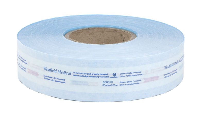 50mm x 200m Made from medical grade 60 gsm paper and multi-layer heat sealable PET/PE blue tinted film. Printed with... Read more