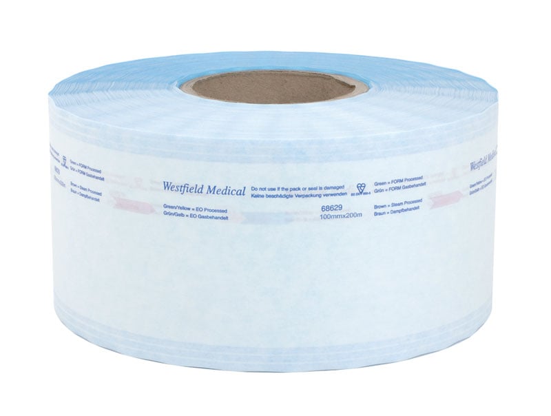 100mm x 200m Made from medical grade 60 gsm paper and multi-layer heat sealable PET/PE blue tinted film. Printed with... Read more