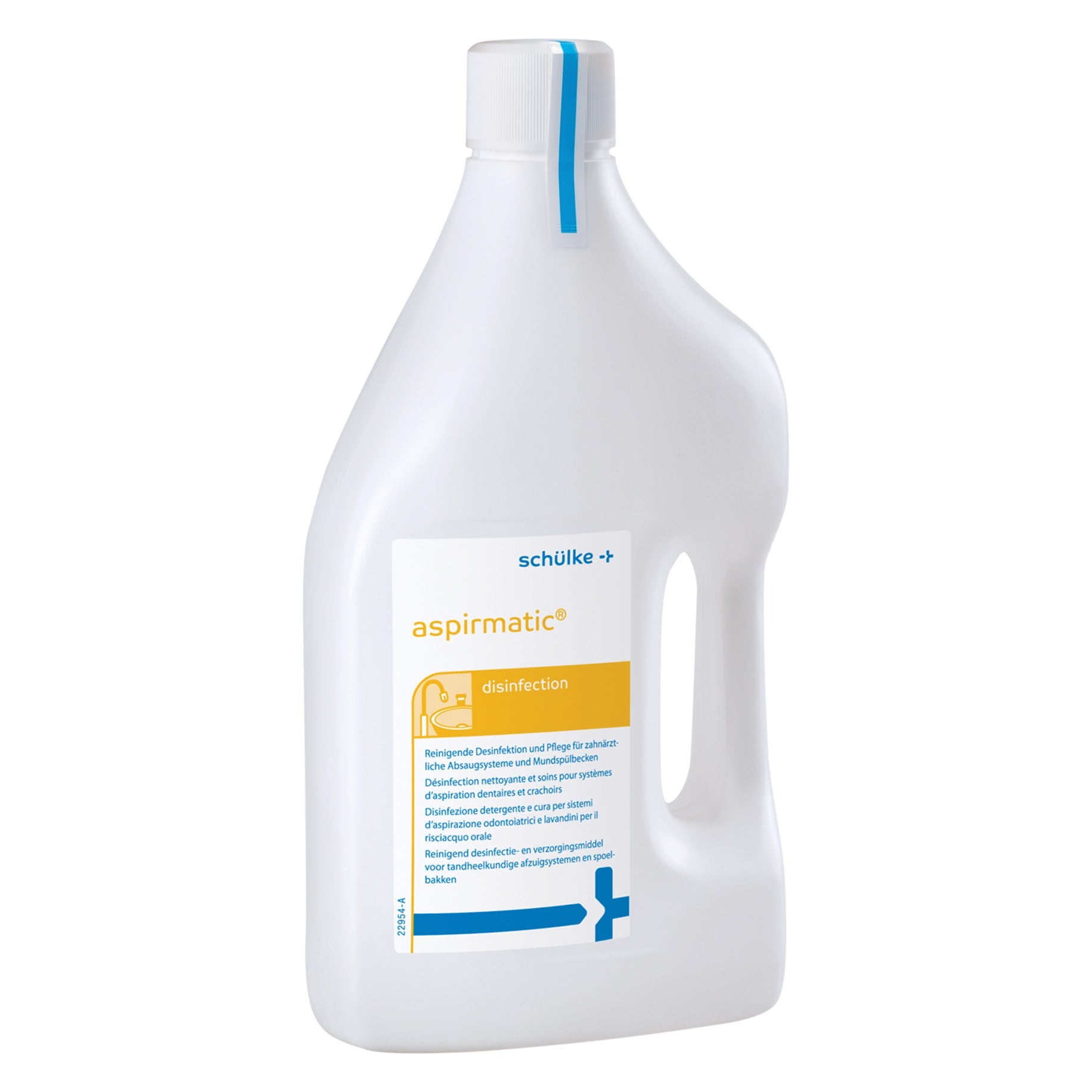 This is a cost-effective, multi-purpose cleaning disinfection concentrate solution, with powerful deodorising effect for use in dental suction systems and spittoons. Each bottle of aspirmatic has a fresh, crisp fragrance, and is non-foaming. This solution is economical, with one bottle making up to 100L of in-use solution. Safe for amalgam traps of all kinds, this solution has been proven by extensive practical tests with leading dental units. Features & Benefits: One bottle makes up to 100L of in-use solution Safe handling for amalgam traps of all kinds. Deodorising with a fresh fragrance. Product Details: 1x 2L bottle of aspirmatic Concentrate FAQs: What contact time and concentration does this solution require? Bactericidal 2 % (20 ml/l) 60 min. Yeasticidal 2 % (20 ml/l) 60 min. Virucidal against enveloped viruses in accordance with DVV (German Registered Association for Combating Viral Diseases 2 % (20 ml/l) 60 min What is this solution made of? 100 g concentrate contains the following active substances: 7,5 g dioctyl dimethyl ammonium chloride. Labelling according to Regulation (EC) No 648/2004: < 5 % non-ionic surfactants, < 5 % soap.