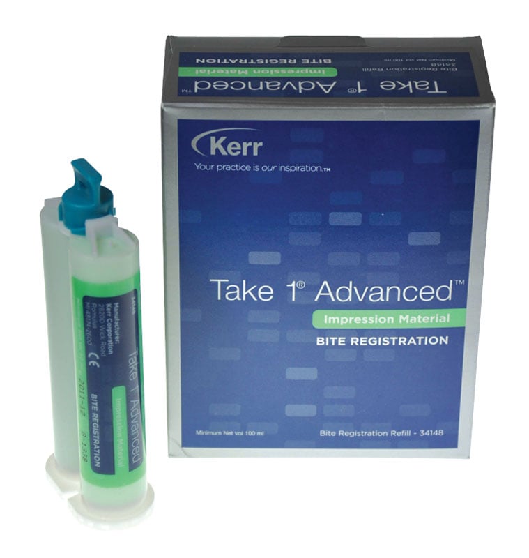 A vinylpolysiloxane (VPS) impression material with an optimum combination of physical properties: strength, elasticity, dimensional stability and the ability to register detail in any environment. Take 1 Advanced provides the widest selection of setting times, delivery systems and consistencies for the perfect combination of mechanical properties in a material that feels like it was designed for your own technique preference, making it unnecessary to use various product lines to suit individual needs. Features:- Outstanding tear strength and elongation. Strong, flexible material stretches around undercuts without tearing or distorting. Hydrophilic wash material. Displaces intraoral fluids to produce impressions with great detail and without voids or gaps. Excellent dimensional stability. Impressions will not distort due to dimensional change or temporary deformation. Widest selection of viscosities, set times and delivery methods. Helps to overcome common difficulties in impression taking and complements the clinician’s technique preference 2 x 50ml Cartridge, 6 Large Mixing Tips and 6 Bite Registration Intra-Oral Tips.