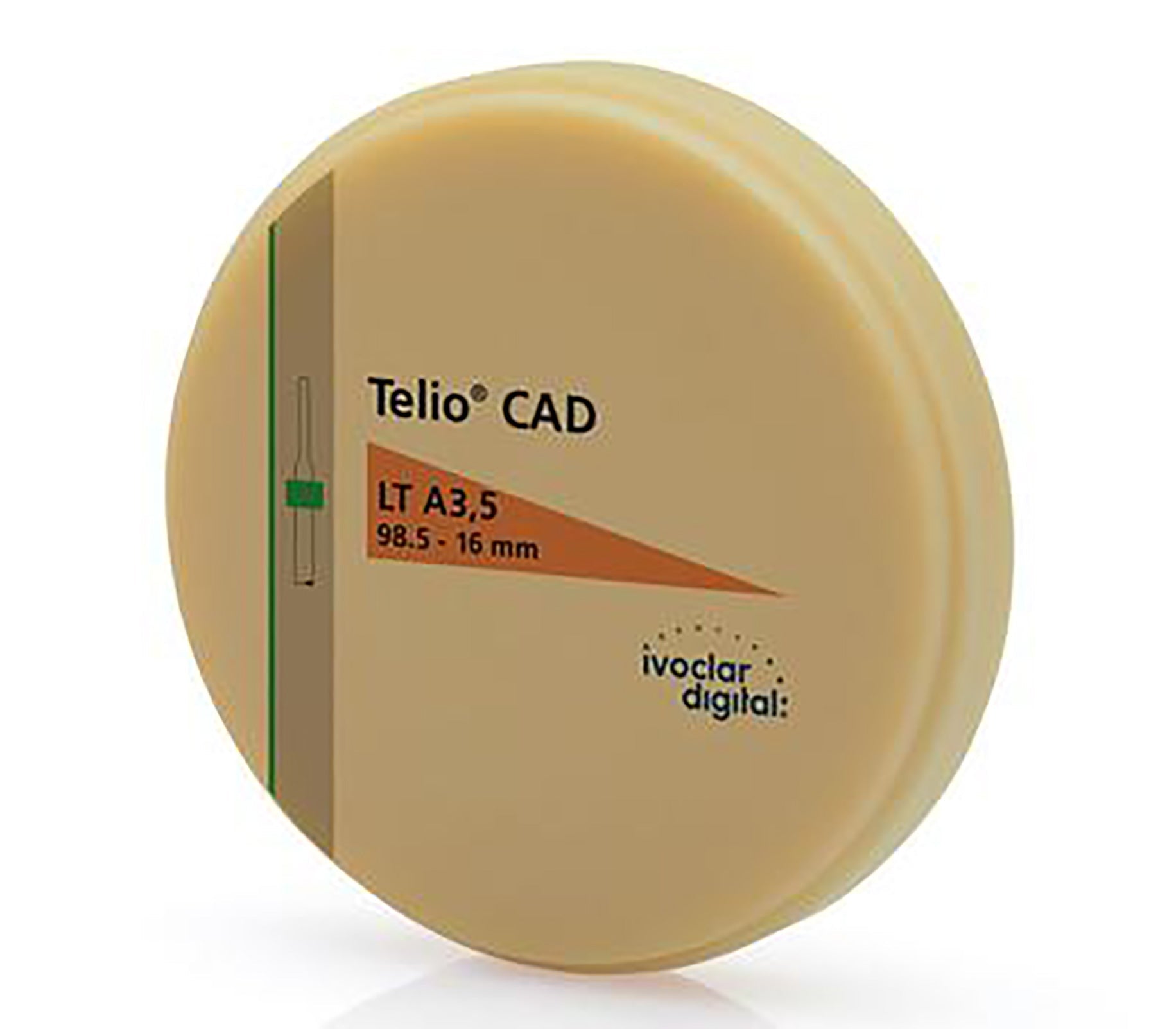 Telio CAD are cross-linked PMMA discs. This material allows you to produce temporary crowns and bridges. The industrial polymerization process makes the material very homogeneous. This means Telio CAD can be easily processed. Prior to insertion, you can choose whether the restoration should be polished or individualized with the stains and layering materials of the SR Nexco light-curing laboratory composite range. Convincing the patient: The excellent visual appearance of the temporary material allows you to show your patient what the final result will look like whilst the restoration is still in its temporary state. Reducing the amount of rework required: Give your patient a natural-looking smile: with a material which is comfortable to wear, shows hardly any discolouration and has a low affinity to plaque. However, it is not only comfortable to wear for the patient, but also the amount of rework required is thus reduced. Indications:- Temporary crowns and bridges Easy to process, good to wear: Easy to mill, esthetic and clinically proven: The temporary restoration can be polished to a high gloss easily and quickly
