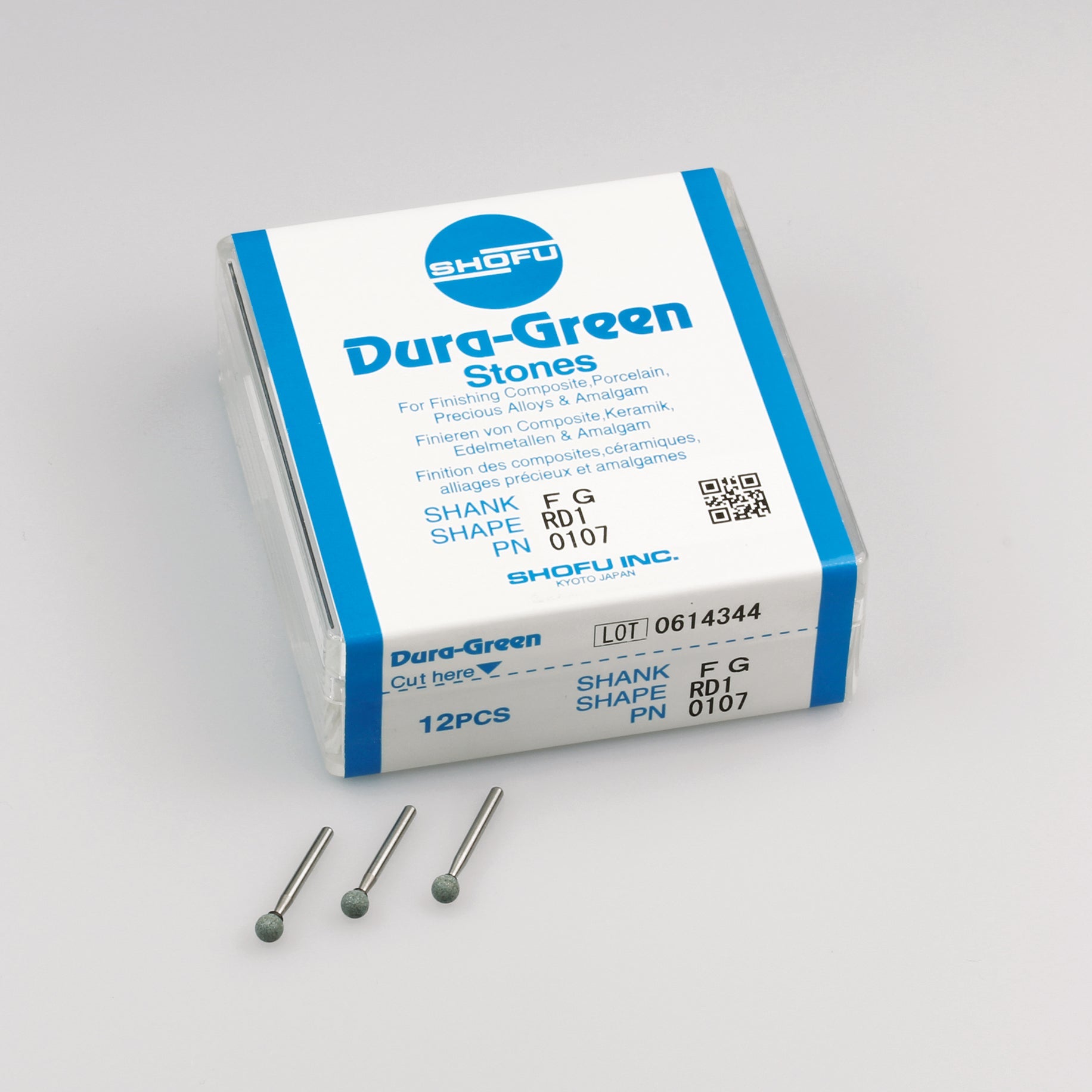 Silicon carbide stones with a ceramic binder Dura-Green are made of high-quality silicon carbide and are exceptional for fast and splinter proof contouring and finishing of porcelain, composite, precious alloys, and amalgam. In the dental laboratory the extensive range of shapes helps to optimally produce the individual characteristics of the surface texture of front teeth with their vertical and horizontal structures. In the dental practice Dura-Green stones are used for quick and simple contouring and finishing of restorations made of all modern filling materials. Dura-Green stones can be cleaned or customised to any individual shape with the Abrasives Dresser. Benefits Precise concentricity Low vibration performance Consistent cutting action Binder matched exactly to the grinding particles Long-lasting operating life Optimal cutting performance Indications Chairside Contouring and finishing of porcelain, composites, precious metal and amalgam In the dental laboratory Contouring and finishing porcelain, indirect composites and metals Suitable for the following materials: Porcelain, composite, precious alloys and amalgam