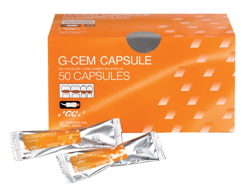 G-CEM is a dual-cure self-adhesive universal resin cement delivered in capsules, designed for the adhesive luting of all-ceramic, zirconia, alumina, metal or composite indirect restorations. G-CEM combines the improved handling and self-adhesion of conventional cements with the superior mechanical properties, adhesion and aesthetics of resin cements. Indications:- All-ceramic, zirconia, alumina, resin and metal-based inlays, onlays, crowns and bridges* Metal, ceramic, fibre posts and cast post and cores (* bridges with maximum 2 abutments) Advantages:- Excellent bonding to restorative materials. Chemical bond to Zirconia without the need for primer application High bond-strength to tooth in both self-cure and light-cure modes No need for bonding procedures on the tooth structure Direct delivery into the root canal with special elongation tip Long-term stability and low linear expansion