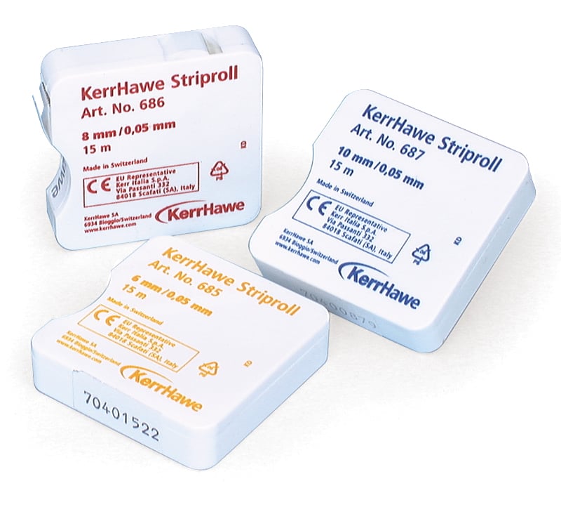 “Transparent†polyester strips in a convenient dispenser. For all anterior teeth filling materials. 0.050mm in thickness.MCH687 (15m) Kerr code: 687 Read more