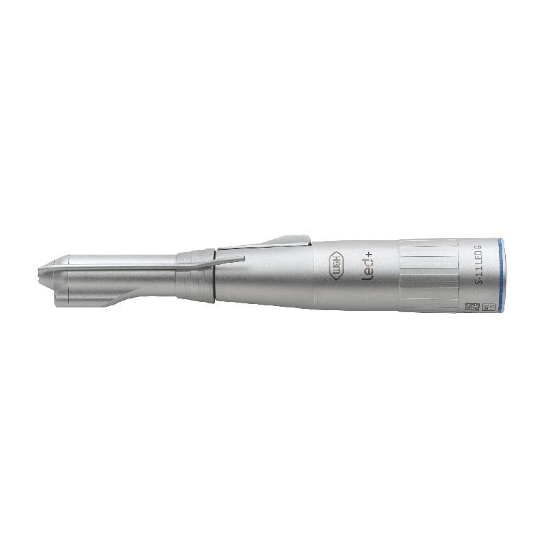 W&H surgical straight handpieces have been specially designed for oral and maxillofacial surgery and implantology. The high-quality stainless steel with special coating makes them particularly robust. The surgical handpieces with mini LED+ produce LED light independently. An integral generator supplies the LED in the handpieces with power. The advantages at a glance - Natural reproduction of red tones Independent power supply with integrated generator Longer life compared with conventional halogen bulbs Fatigue-free working thanks to optimal ergonomics Durable and robust due to high-quality stainless steel and scratch-resistant coating Can be dismantled for thorough cleaning Thermo washer disinfectable and sterilizable S-11 LG Features: Lever chuck, mini LED+ and generator Coupling system: ISO 3964 (DIN 13940) 1:1, straight, can be dismantled, for surgical burs and cutters Ø 2.35 mm (also Stryker system), L = max. 45 mm, external spray, maximum drive speed 40,000 min-1. 12 month warranty. Indications e.g: apical resection, osteotomy, apical trepanning & bone modelling.