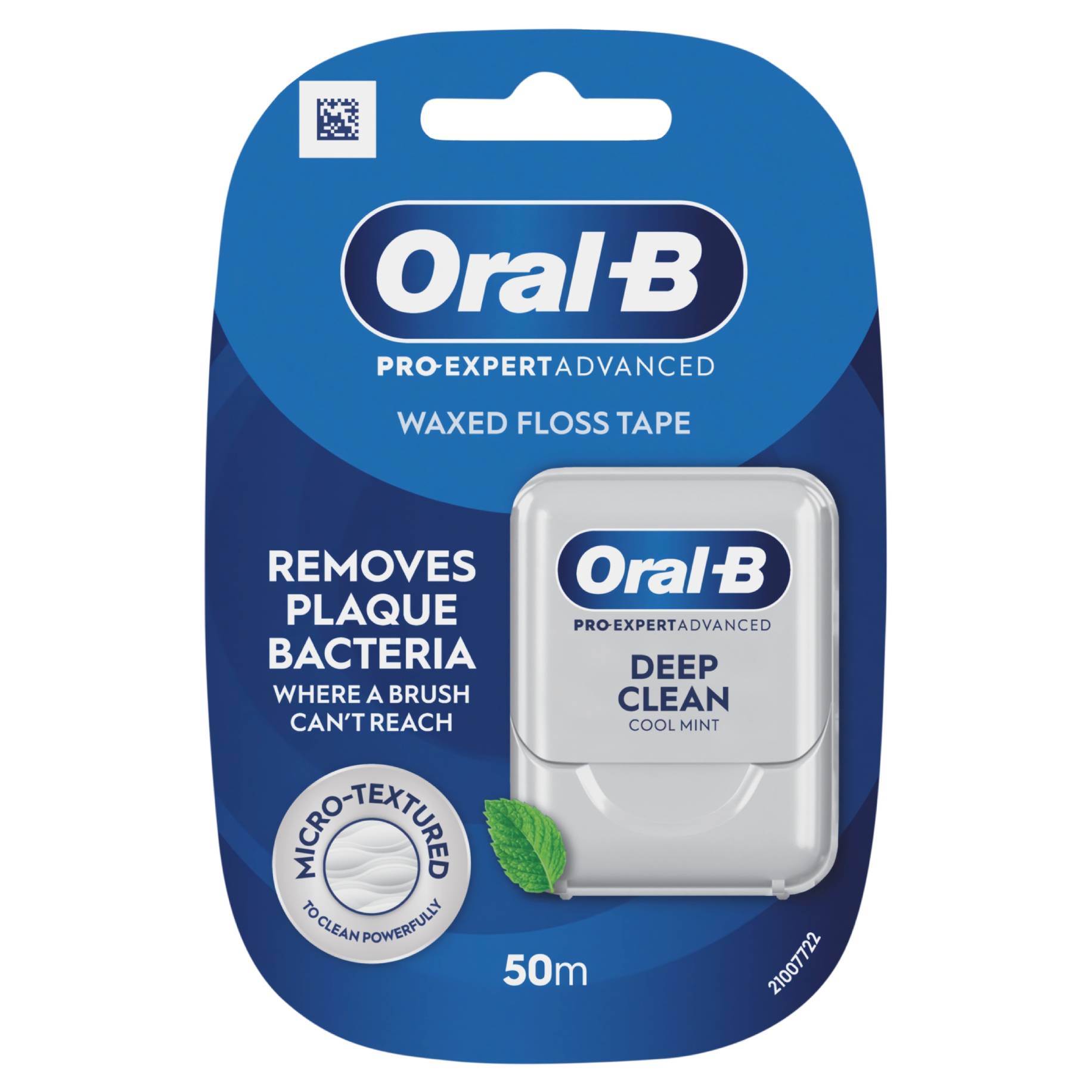 Oral-B Pro-Expert Advanced Waxed Dental Floss, for a deep clean with a cool mint flavour. Removes plaque and food particles from between the teeth. Reaches where a toothbrush can't for an even deeper clean, to help prevent gum problems. An oral care essential for a complete dental clean. Oral-B, the #1 brand most recommended by dentists worldwide* *Based on surveys of a representative worldwide sample of dentists carried out for P&G Removes Plaque And Food Particles From Between the Teeth For a Deep Clean With a Cool Mint Flavour To Help Prevent Gum Problems Floss like a pro with Oral-B Pro-Expert Advanced Waxed Dental Floss. Designed to give your mouth a deep clean, this micro-textured dental tape has a fresh cool mint flavour and cleans deep between the teeth to remove plaque and food particles. By reaching places that a toothbrush can't, daily flossing with Oral-B helps prevents cavities and tartar build-up, keeps breath fresh, and even helps maintain the whiteness of teeth by helping to prevent surface stains.Your oral care essential for a powerful daily clean,