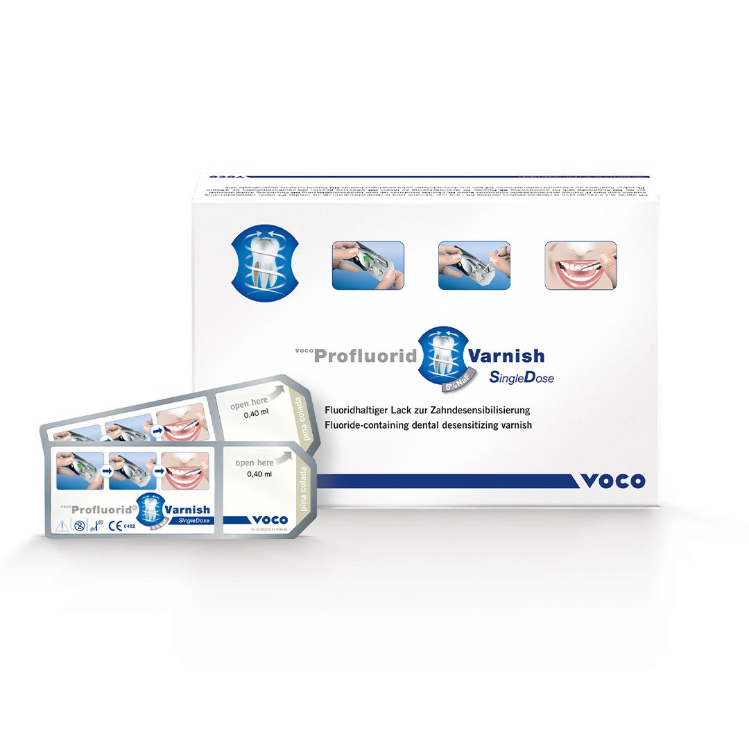 Fluoride-containing dental desensitising varnish (5% NaF) Indications:- Treatment of hypersensitive teeth Sealing the dentinal tubules, e.g. for cavity preparations or... Read more