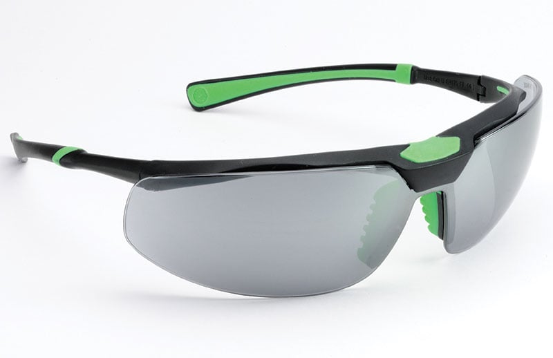 Safety Glasses Smoke Flash Mirrored Lens, Black Green Frame