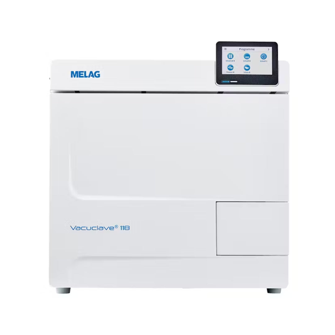 The Pro Line class S autoclaves offer an even cheaper alternative for practices and clinics that do not require a class B autoclave due to the instruments used. Vacuclave 118 S even sterilizes packaged instruments with simple hollow bodies (e.g. articulated instruments such as scissors and needle holders). Product details // Technical Data: Stand-alone class S autoclave Capacity: for up to 4 kg of instruments on 5 trays Intuitive operating concept with Smart-Touch display and integrated documentation Device dimensions (WxHxD): 47 x 50 x 64 cm, fits on 60 cm tabletop chamber size and volume: 35 cm, ø 25 cm, volume 17 litres load capacity: max. 4 kg instruments / 1 kg textiles Power supply: 220-230 V, 50-60 Hz Contains:- 1 x ME10118S Vacuclave 118 S 1 x ME82620 Mount A Plus (short) 3 x ME00280 Tray (29 x 19cm) For more information or to place an order please phone 01786 460 600