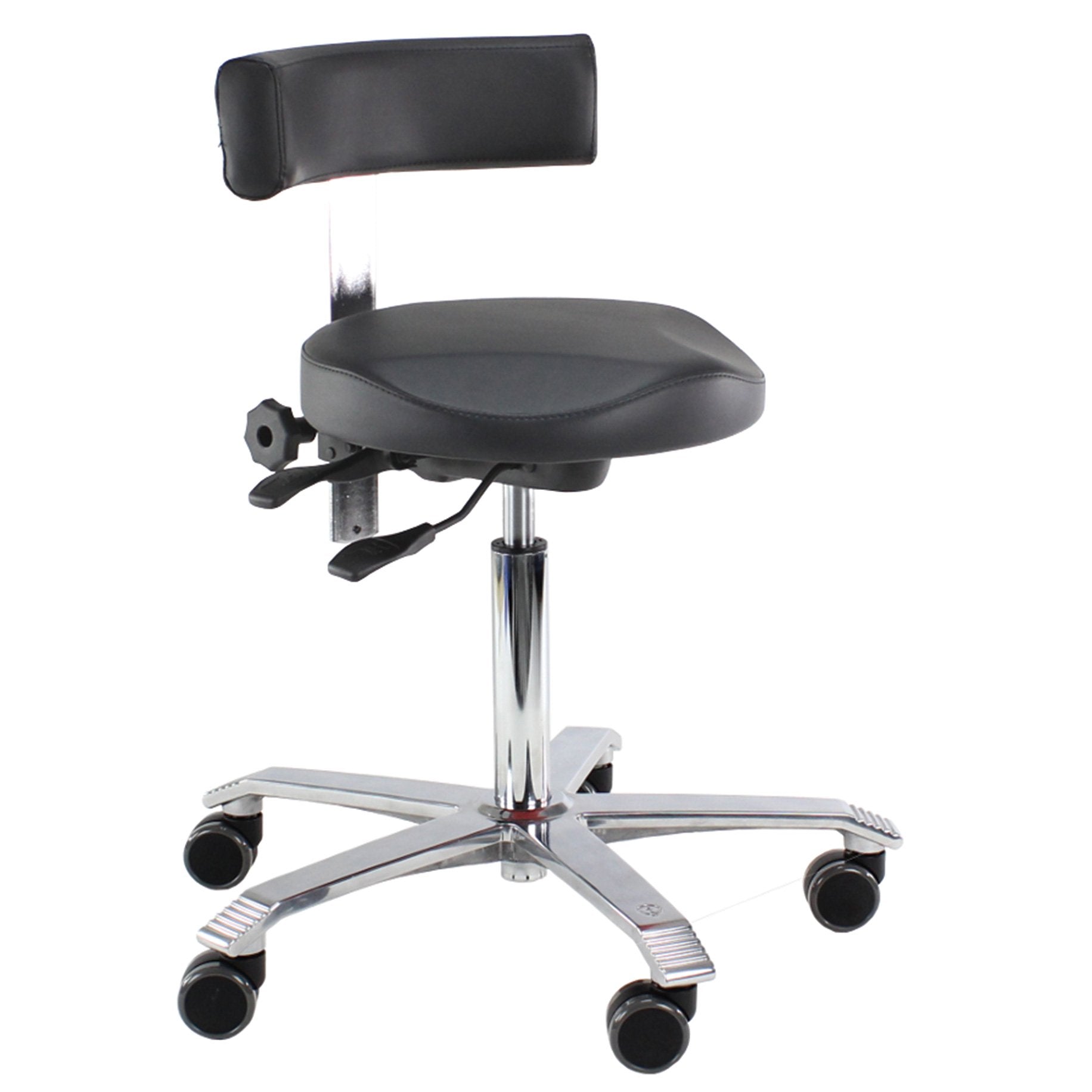 The 6321 is a chair with a comfortable Score Ergoshape seat with recess for the thighs to prevent the stagnation of blood circulation. You can easily adjust the compact, functional backrest in height and angle. Features & Benefits: Lumbar Support: When you seek more support during long sessions in surgery or want to stretch your back the lumbar support provides just that. Also, when you have the tendency to slouch, the lumbar support is a real asset to your stool. A lumbar support is adjustable in height and angle. You place it in the lower part of the spine, basically just above the ‘belt line’. It has a curved design, so it follows your spine and also slightly tips forwards and rearwards, so it doesn’t lock your upper body. Ergoshape seats help to enhance circulation. Adjustable backrest, height, and angle. Product Details: 1x Medical 6321 stool backrest and tilt Measurements - The Score 6321 Operator stool has an Ergoshape seat, Ø 400 mm with recessed edges. This means you can sit actively with an open hip angle (110°) and your upper legs don’t get pinched. The seat and curved lumbar support can be adjusted in height and angle. Measurements - Height adjustment app. 570 – 770 mm, Aluminium polished base Ø 540 mm, Soft Ø 65 mm brake unloaded castors Maximum user weight 120 kg (19 Stone or 265 lbs.) Upholstery and gas lift options available. Each stool is made to order. To discuss your specification please contact our Equipment Sales Department or email EquipmentSales@DDGroup.com