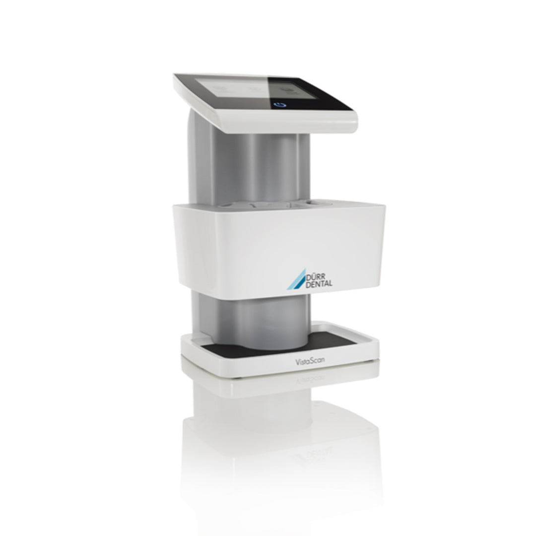 In the form of VistaScan Ultra View, a high-end device is available that combines the superior image quality of PCS technology with excellent performance and innovative, groundbreaking features. It has been developed particularly with the high demands of larger dental surgeries and clinics in mind. Parallel scanning with 2 slots Thanks to the new design of VistaScan Ultra View, which allows image plates to be scanned simultaneously in 2 slots, the scanner can be used more efficiently – but with no compromises in terms of quality. This saves valuable time. Quick and easy scanning The easy feed concept enables image plates to be fed into the unit and scanned straight away, one after the other – with no time wasted in between. The scan slots in the VistaScan Ultra View system can be easily adjusted to all intraoral image plate formats with the aid of interchangeable plate guides. Large glass touchscreen display The comfortable, colour 7" touchscreen display provides a user interface that is very easy to use. Exceptional image quality thanks to PCS Thanks to PCS technology, VistaScan Ultra View is capable of reliably displaying even early stages of caries lesions and endodontic instruments. WLAN capability The integrated WLAN functionality and the LAN interface make it incredibly easy to integrate the scanner in a network ScanManager – for even more efficient working Scanning without a PC is possible thanks to the stand-alone mode The high-performance VistaScan Ultra View unit is a professional system designed to meet the highest demands in terms of image quality, ease of use and performance. To ensure that it makes the most of its potential, the system is designed to work only with VistaScan IQ image plates. Alongside the tried and tested technology and outstanding image quality, thanks to PCS technology this combination offers a wide range of new features that noticeably improve user friendliness, efficiency and reliability. Technical Data: Display: 7" Theoretical resolution (LP/mm, dpi): 40 (2.000) Effective resolution (LP/mm, dpi): 22 (1.100) Greyscale (bit): 16 (65.536) Weight (kg): ca. 8 Dimensions (H x W x D mm): 391 x 251 x 292 Standby function Interfaces: LAN, WLAN Plate sizes: S0, S1, S2, S3, S4