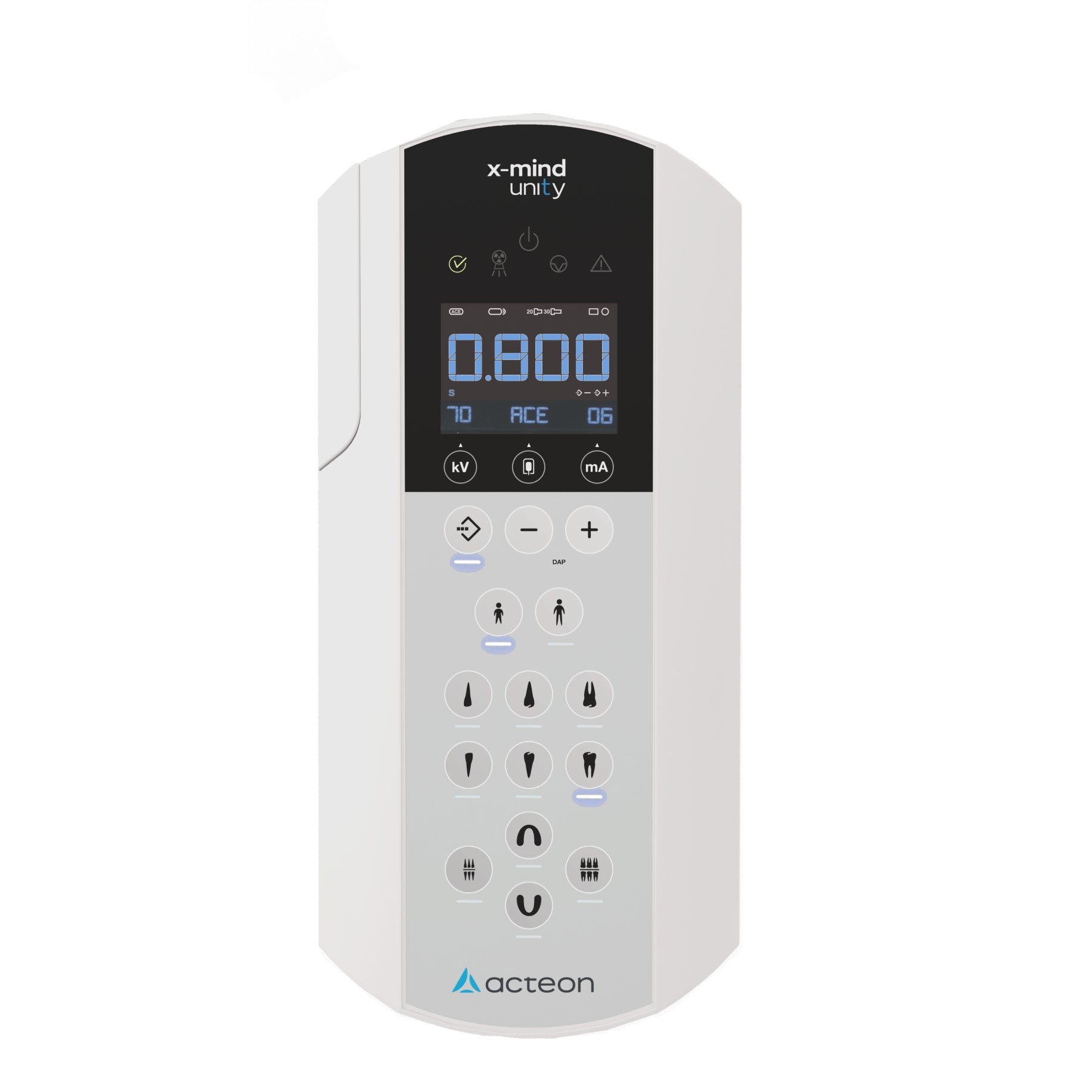 X-Mind Unity is Acteon’s outstanding intraoral DC X-ray generator, which combines an elegant design with technological solutions resulting from long-standing imaging know-how. The constant potential high frequency (DC) generator combined with a small focal spot (0.4mm) and a complete range of radiological settings, is engineered to offer high standards of image quality and safety in a simple and intuitive way, perfectly integrated into the user’s workflow. Ergonomics and usability meet with the elegant design and superior quality materials of the large LCD display, where everything you need is at your fingertips to speed-up the acquisition and streamline your workflow: pre-set anatomical programs, device information, loading factors, dose…and much more. The arm and tube head movements are so fluid that you can single handedly position them without any effort or stress. Moreover, the anti-vibration and antimovement mechanism ensures drift free positioning during an exposure, making the acquisition workflow more comfortable and reliable. A complete range of cone lenghts and shapes, allows to satisfy almost any clinical need: Short round cone (20cm), when comfort come first Long round cone (31cm), for outstanding quality images Long/Short square cones (44x35mm), to get a 50% of dose reduction Three arm extensions available (40, 80, 110cm), two configurations (top or bottom arm), one goal: adapt to your needs. If the wall-mounted version isn’t for you, X-MIND® unity is also available installed on a selfstanding mobile support. Moreover it can also be easily integrated into the dental unit. Plug-in to find out the full potential of X-MIND® unity Combining X-MIND® unity intraoral X-ray generator with the brand new SOPIX® plug-in, will let you get the most unleash their full potential, thanks to: the Automatic Exposure Control (ACE), especially developed to block the X-Ray emission of rays when the correct irradiation threshold is reached on the receptor, so ensuring to always get the best image quality at the lowest compatible dose the brand new plug&play sensor’s connection system, to get what you need always at your fingertips in a stylish, safe and versatile solution. Warranty:- 2 Years