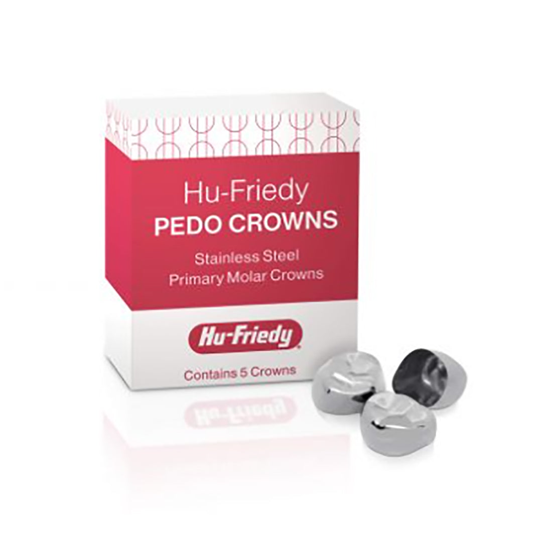 Stainless Steel Primary Molar Crowns used for dental restoration. Hu-Friedy Paed Crowns are the perfect fit for you and your patient! Hu-Friedy primary molar stainless steel crowns were developed to deliver consistent, accurate and predictable clinical results. More narrow mesial-distal maxillary first molar width for quicker adjacent crown placement Ideal wall height meaning less trimming and crimping (if at all!) Pre-trimmed, crimped and contoured surfaces for less time spent chairside Accurate occlusal anatomy mimicking the natural tooth Optimal occlusal thickness with superior resilience to abrasion and perforation Features:- Pre-trimmed and crimped, for quick and simple placement Accurate occlusal anatomy that mimics the natural tooth Ideal occlusal thickness, offering superior resilience to abrasion and perforation Soft, adaptable gingival margin and lateral areas for simpler and effortless trimming and crimping, if needed