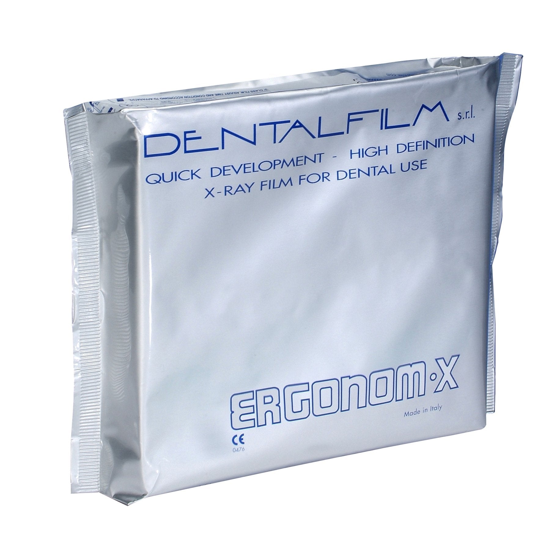 Ergonorm-X Film D-Speed is a self developing x-ray film. Clean and efficient working aid for endodontic and implant procedures No processor or dip tanks required Size: 30.5 x 40.5mm The self-developing intraoral film allows you to obtain a perfectly developed and fixed image in just 50 seconds. The single bath is contained in a special flexible container produced with high barrier materials that guarantee perfect preservation of chemical properties for over 18 months. It is ideal in emergency situations (failure of the RVG software, absence of the assistant, etc.) or simply to use a tool that eliminates the need to equip a darkroom, to buy bottles of development and fixing liquids or simply to save costs as each individual film corresponds to a specific amount of development and fixing liquid. No waste of material and no release of chemistry on the hands or in the study, following the instructions you can extract the film without dispersion of liquids. ERGONOM-X : compatible with 60 and 70 kV radiography equipment